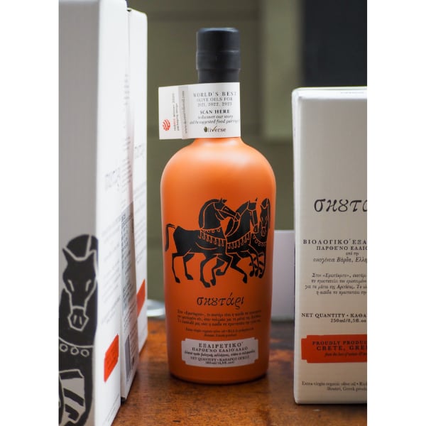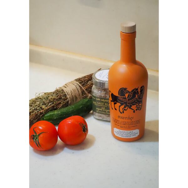 クレタ島らしいテラコッタ調のグラスボトルも魅力のひとつ。